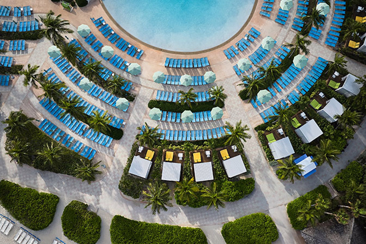 Private Cabanas offer friends and families a shaded and relaxing place right next to the sparkling blue and white poolscape.